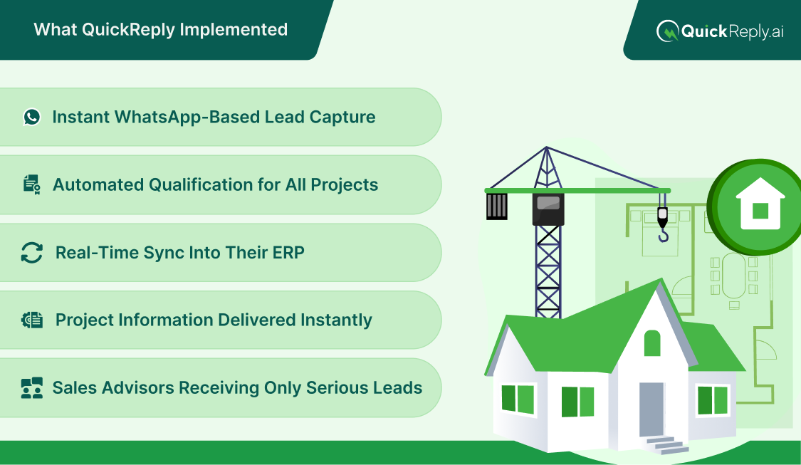 Real estate buyers compare projects very quickly. If they do not receive clarity within minutes, they move to the next developer. Manual WhatsApp replies were simply not fast enough to match buyer expectations, especially during peak hours.