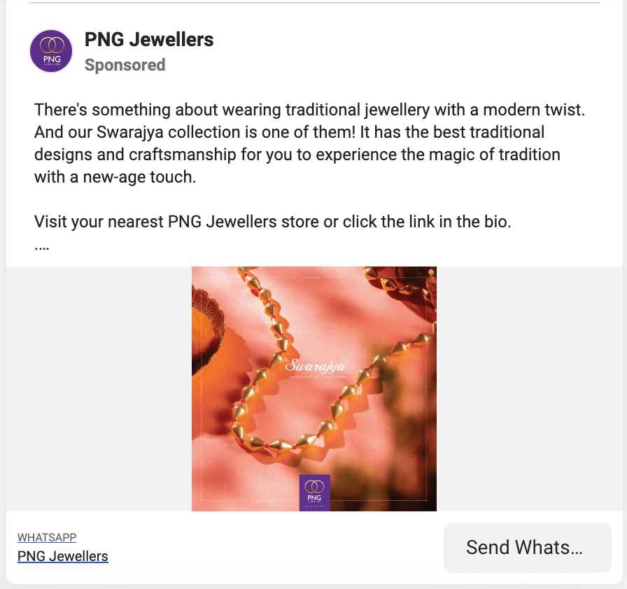 PNG Jewellers provides a vast jewelry collection ranging from everyday jewelry to your most awaited moments. Coming to the ad copy, traditional jewelry with a modern twist? Now that’s a copy that will intrigue customers.