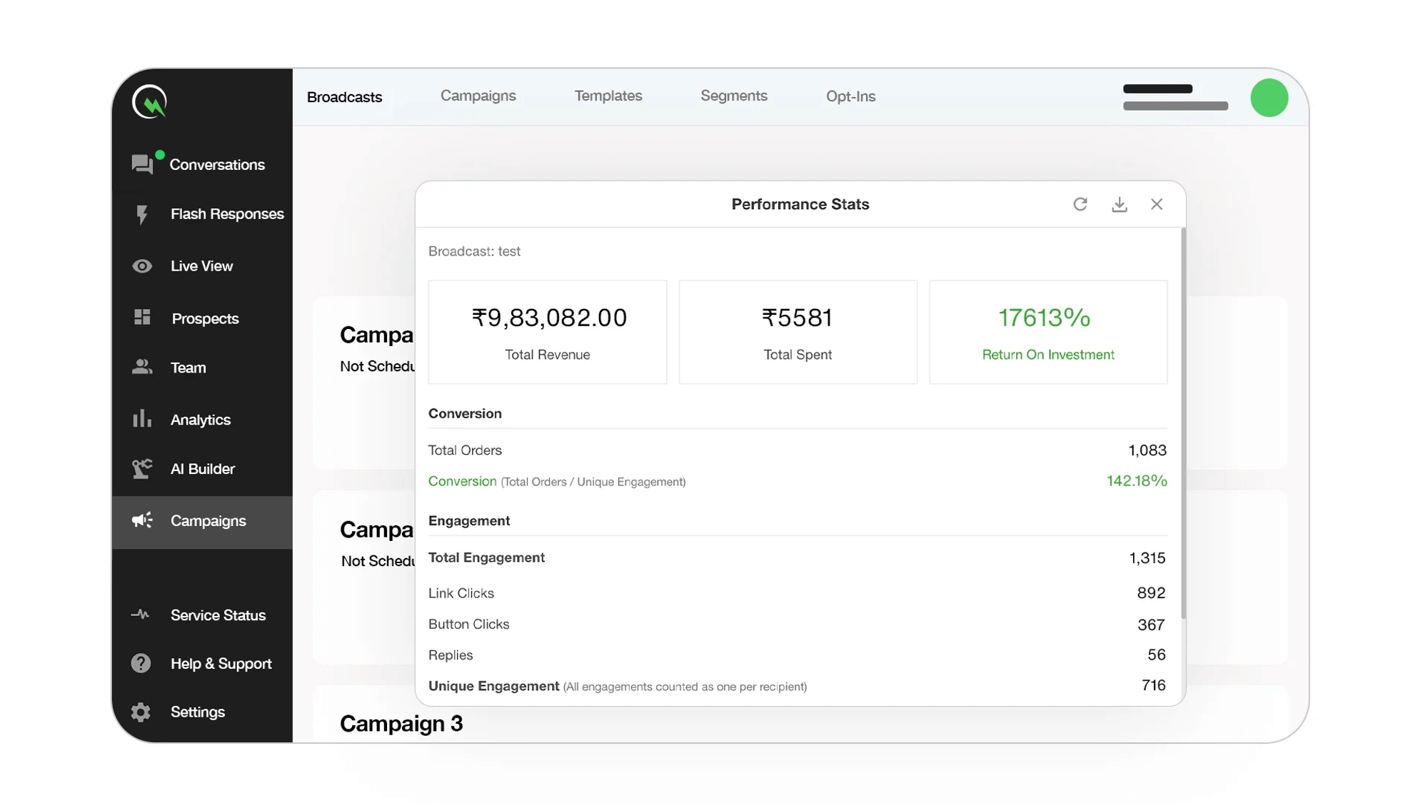 8—Revenue Attribution: QuickReply.ai takes the guesswork out of your WhatsApp marketing campaigns by providing detailed analytics that matters. With the platform, you're not just collecting data but gaining insights to drive your business forward. The Return on Ad Spend (ROAS) feature allows you to see exactly how your ad spend translates into sales, ensuring your marketing budget is always an investment, not just an expense.