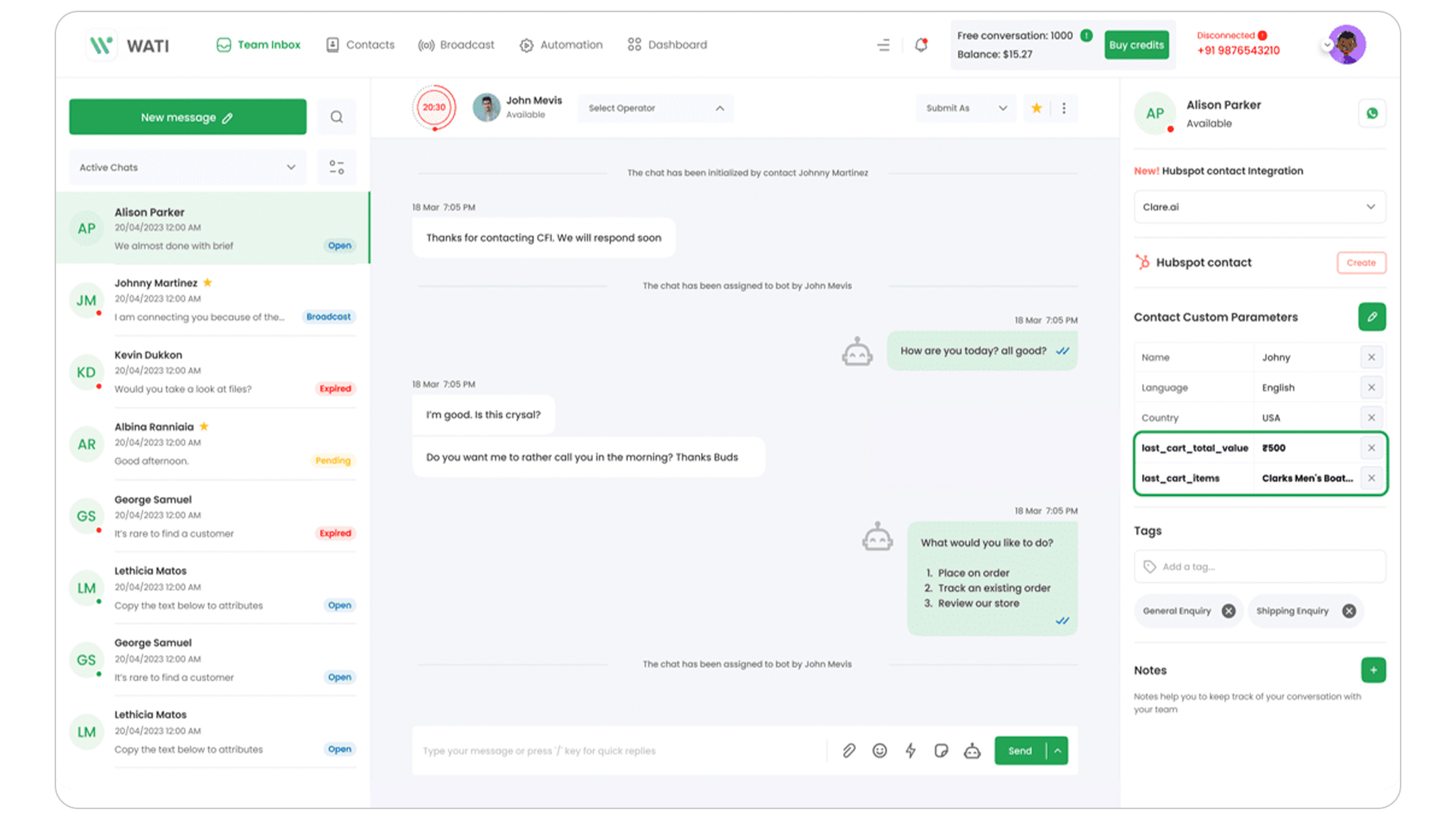 Another BusinessOnBot alternative is Gallabox, which helps businesses increase their lead generation and sales numbers using WhatsApp. With their services, you can set up chatbots to handle inquiries and have a team inbox so multiple staff members can jump in on customer conversations.