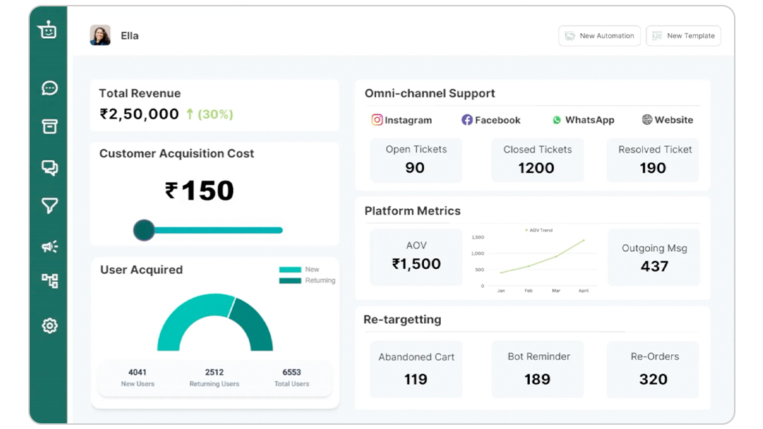 4 - Chatbot builder - QuickReply.ai has pre-built chatbots for almost every eCommerce industry and can be used by anyone looking for an easy way to build an interactive online shopping experience for their customers. This capability lets you provide instant 24x7 customer support and bag more sales. Also, you can create a custom bot from scratch in minutes without sitting down with the account manager, unlike BusinessOnBot. For example, if a customer asks on WhatsApp to cancel the order, a BusinessOnBot chatbot will reply with something basic like "Thank you for your query. We will get back to you." But with QuickReply.ai, you can build an entire flow based on different use cases. In this case, not only will QuickReply's intelligent chatbot ask the customer about the issue and its reason, but it can also offer a discount if the issue is price. This level of customization is only possible with QuickReply.ai.
