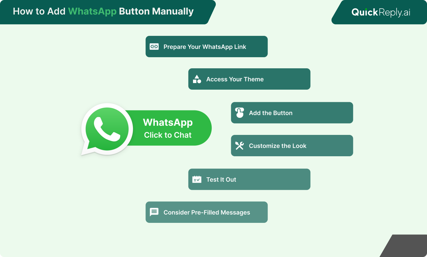 Adding a WhatsApp button to your Shopify store is a no-brainer for better customer engagement and support. Whether you use an app or manually add it, it’s a quick win for your business. And if you want to keep things simple while getting more out of it, QuickReply.ai has everything you need to make it happen smoothly. Book a demo today!