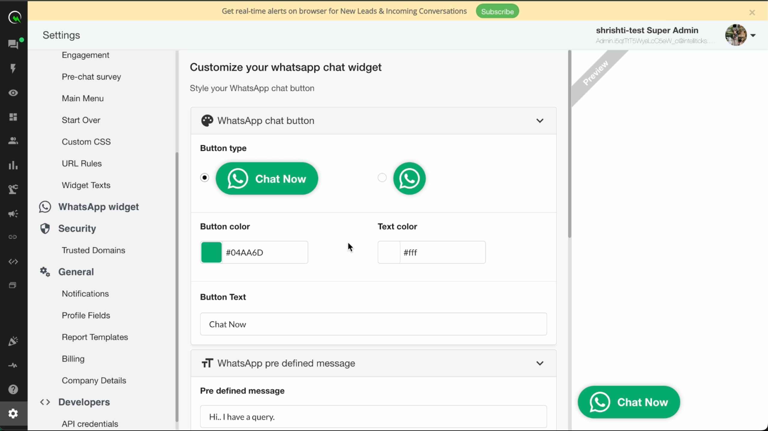 Customization is key when adding a WhatsApp button to your Shopify store. Everything should align with your brand’s look and feel, from the button's design to its messaging.