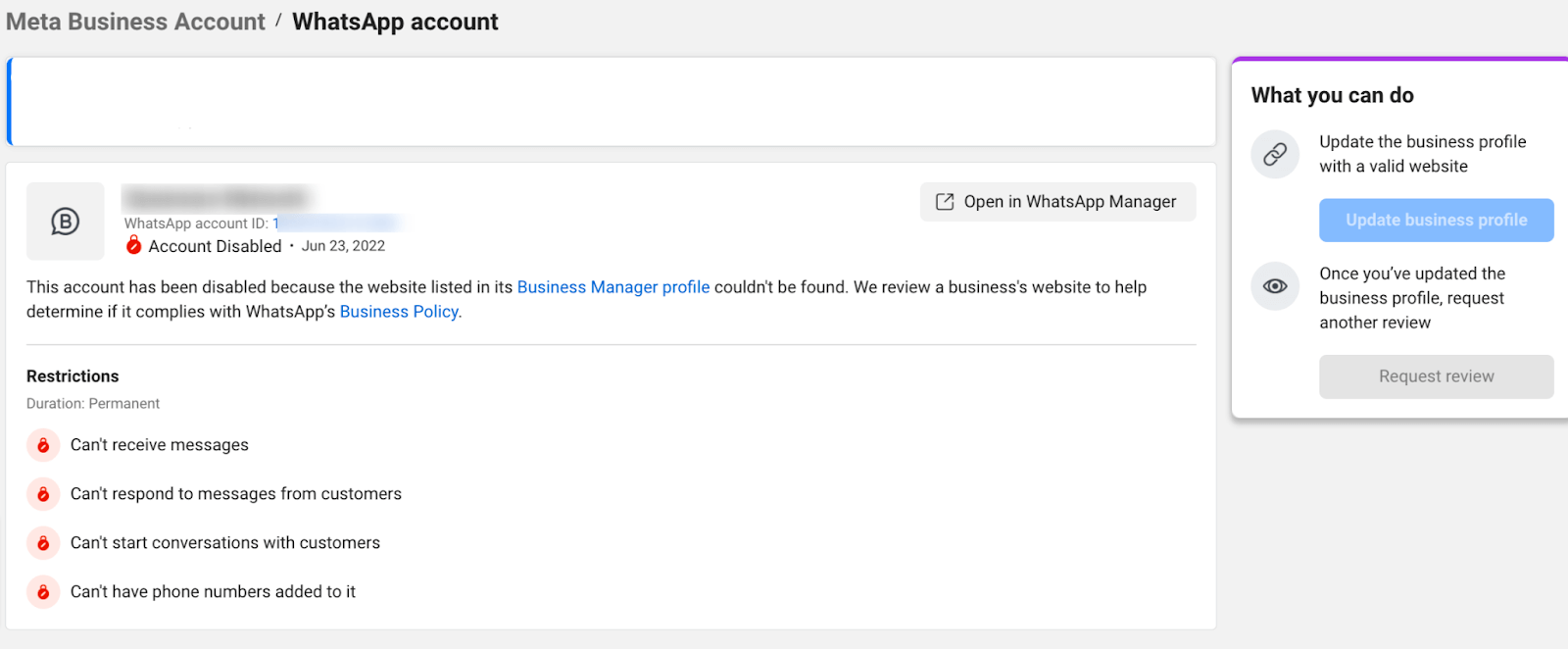 1. Identify why your WhatsApp Business account was disabled