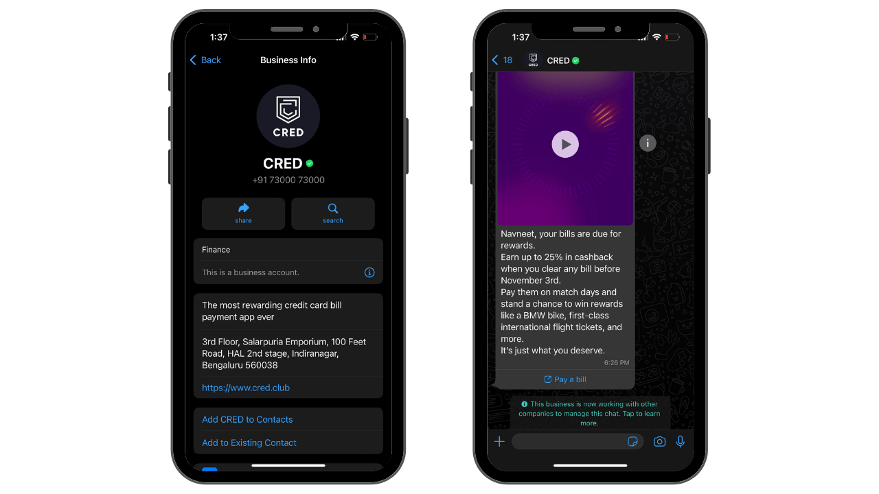 Now, you might be thinking that we said in the guidelines section that you shouldn't capitalize all the letters of your WhatsApp business display name, but CRED uses it. They can only use it because they have always mentioned their name as "CRED," be it on their website or any external source.