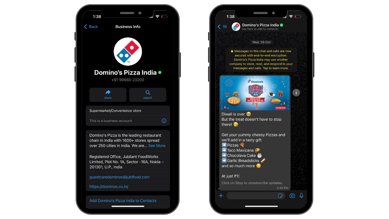 Though you cannot use geographic location in your display name. But because this Domino's WhatsApp account is only meant for customers in India, therefore, they have used it, and it was approved.