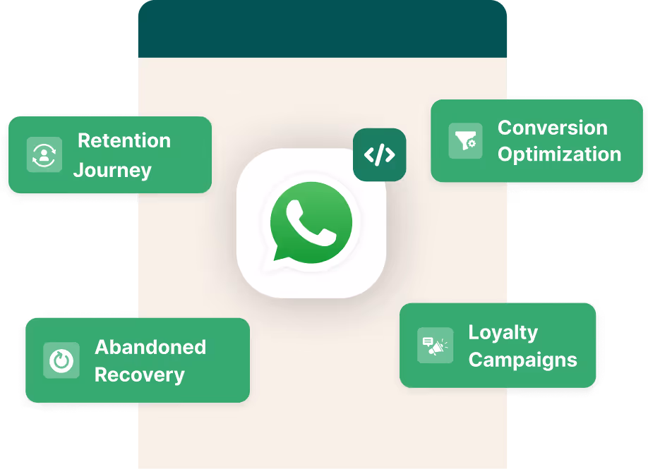 Connectors for ecommerce platforms, CRMs, ticketing systems, custom APIs, and webhooks to sync leads, orders, and customer attributes.
