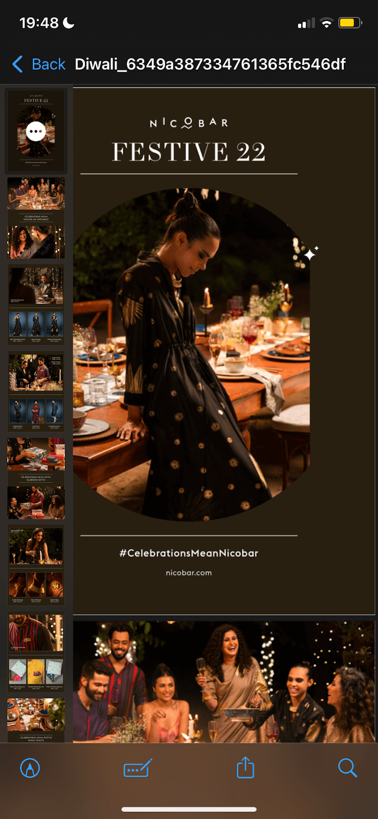 Another lifestyle brand known for its exclusive collection of home decor, accessories and fashion and apparel, uses the power of lookbooks and WhatsApp broadcasts. They have curated their products into a festive outfit inspiration lookbook, with product photography that is exclusive to the festive season.