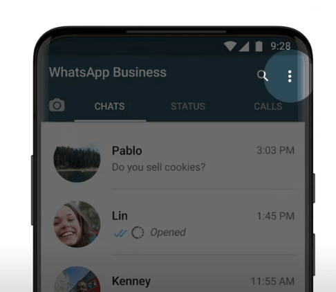 1. Open your WhatsApp Business account and click on more options.