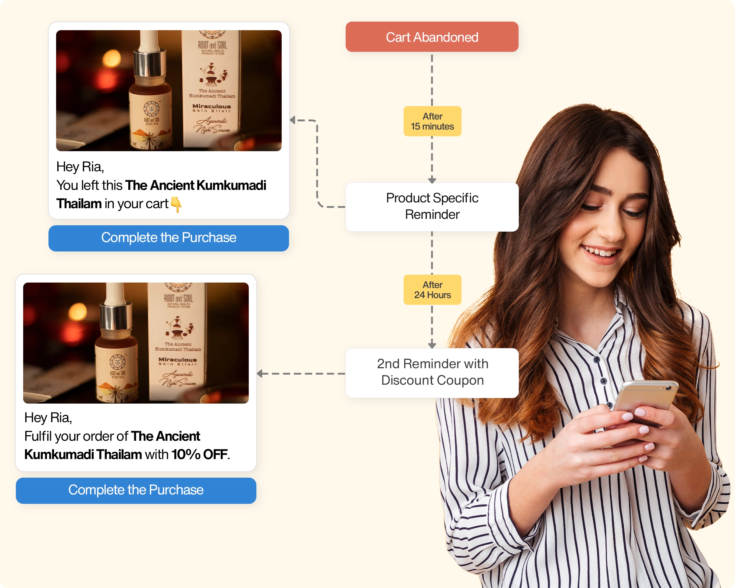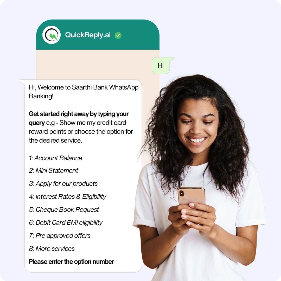 Let’s take the example of a customer named Riya. Late at night, she is looking for skincare products. She sends a message to your brand’s WhatsApp channel asking for recommendations for her sensitive skin. Instantly, your chatbot responds, engaging her in a conversation to better understand her needs.
