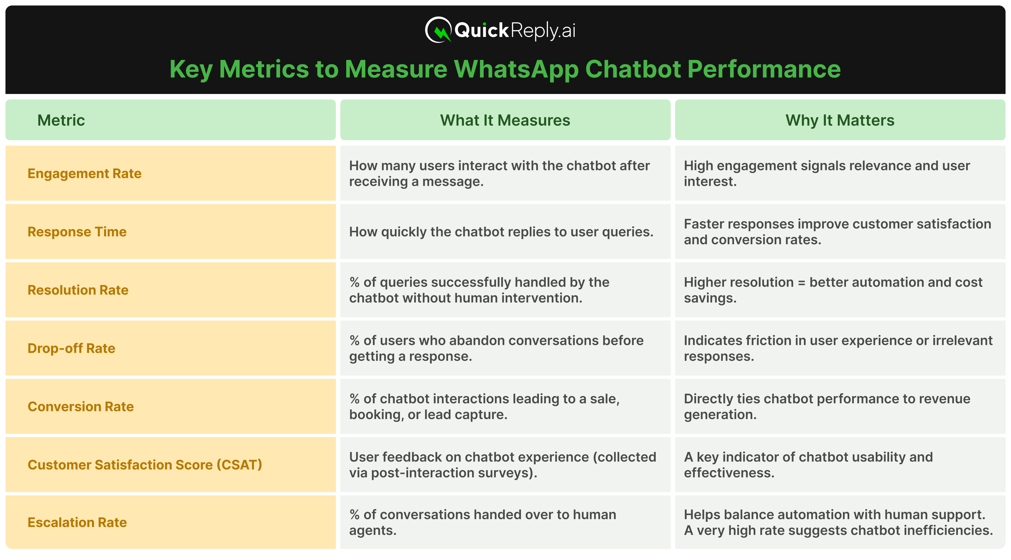 Building a WhatsApp chatbot is only half the job. The real challenge lies in ensuring that it delivers business impact. A chatbot that runs on autopilot but doesn’t drive results has wasted potential.