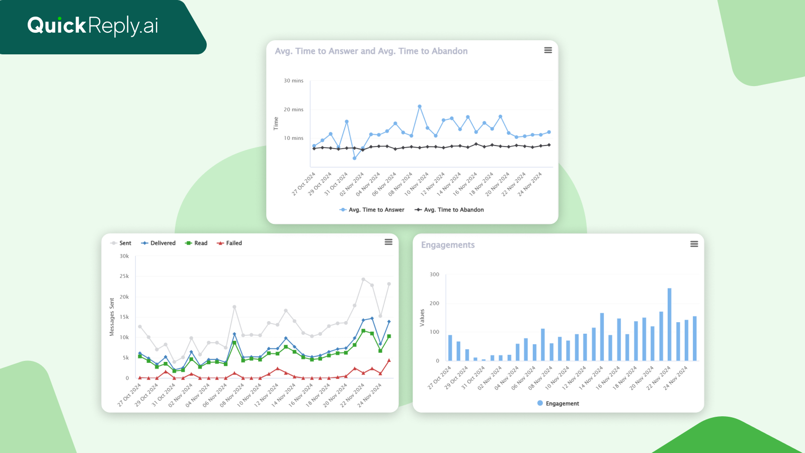 QuickReply.ai provides advanced tracking and real-time analytics dashboards to measure chatbot effectiveness. Businesses can: