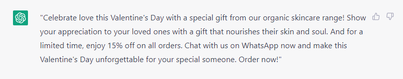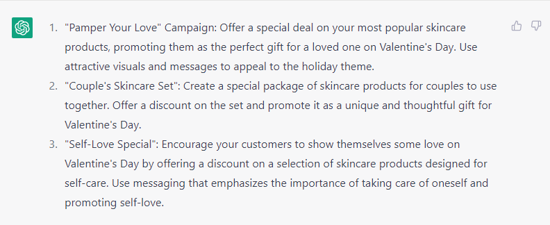 If you want to create a Valentine's Day campaign, ChatGPT can help you develop campaign ideas that your audience will find appealing.