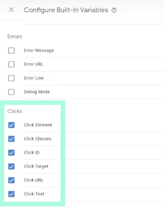 Step 1: Enable all Click Variables and Publish your Tag Manager