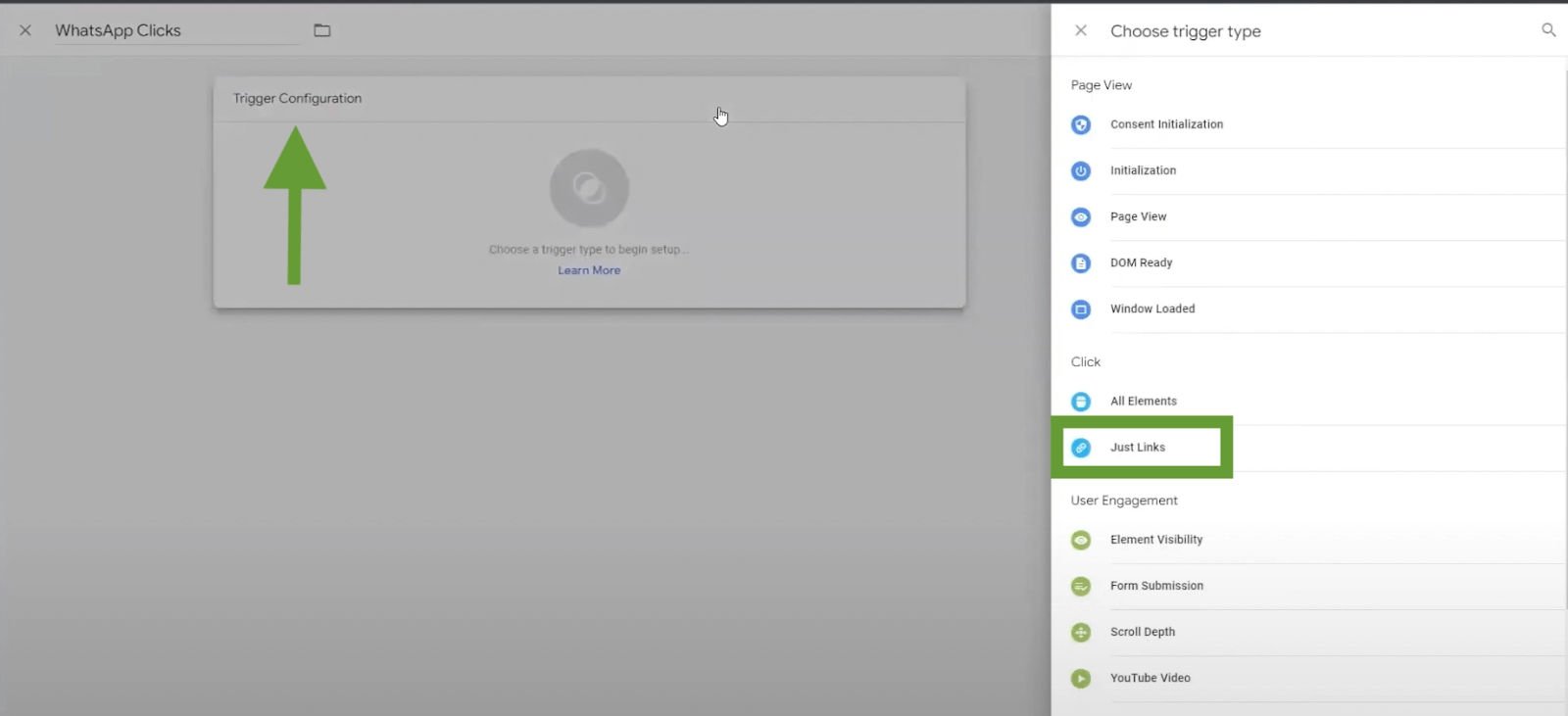 In Trigger Configuration, select "Just Links" as the trigger type.