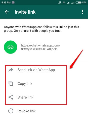 Pro tip for sharing the link: Any WhatsApp user with your link can join your group. Hence, share the link with only those you want in your group who are trusted.