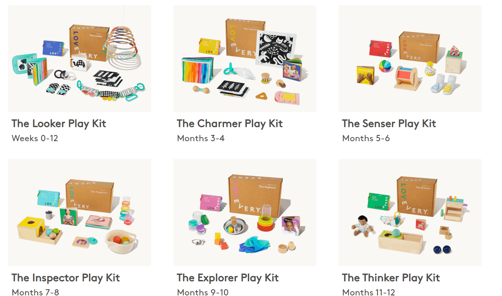 Here’s an example of how lovevery created different types of subscription boxes based on the growing stages of a baby. They have a subscription box for all growth stages, from one month to forty-eight months.